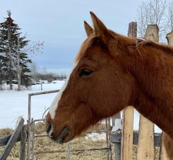 This Appaloosa gelding is sometimes hard to catch, however, once caught, he is a quiet horse, patient and good with people. Kosmo is a “GO” horse, both in the arena and outside in the pasture. He can be ridden out on his own, but he doesn't really like it. He is good with moving cows, and on trail rides. Kosmo lets you easily pick up his hooves and work on them. Unfortunately, a few years ago Kosmo injured his ankle and now has arthritis in it. We are trying to have him in semi-retirement, so he only does short rides and lessons. Kosmo is not a cuddly or huggy type of horse!!
