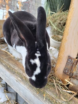 There is only one bunny who lives in either the winter hutch or the more open summer pen. Burrito is the bunny that my granddaughter gifted me when her doe had kits. This is the most "velveteen rabbit" you will ever stroke. She is generally very curious and interested in people. Especially ones that have carrots!