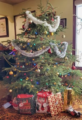 Through the verdant Christmas tree,