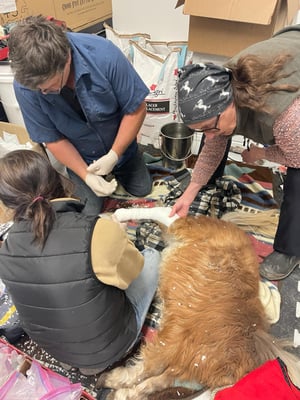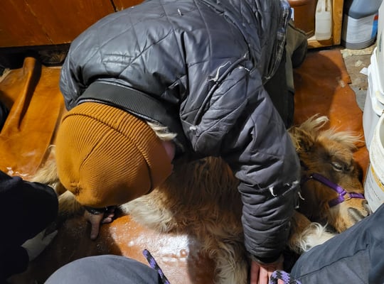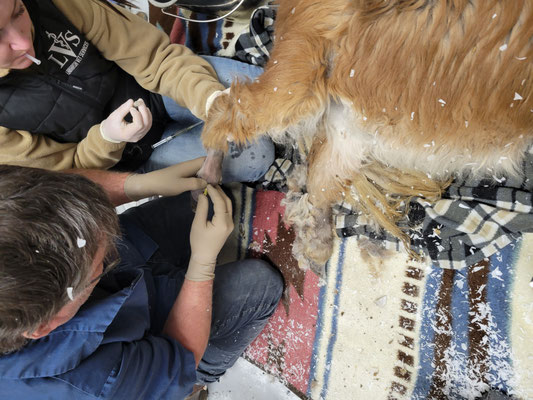 In the summer, Dr. Ed returned to the Ranch with his assistants and together they removed the second cast. A half cast was placed around the leg to continue to give it some stability but also allow more movement.