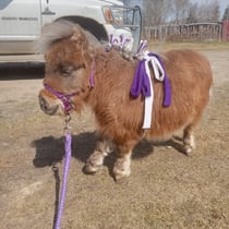 Amanda B.(Banana) took a great interest in this very tiny foal and her well being. Last fall we put CC in the trailer with her aunt as a companion. By last December I decided we need to try “something” to straighten the collapsing right hind fetlock. Consultation with Dr. Ed yielded a plan to place a “pony shoe” (the biggest metal flat washer I could find at an equipment dealership in Meadow Lake) under the hoof to prevent the ankle from twisting off to the side.