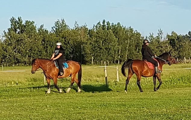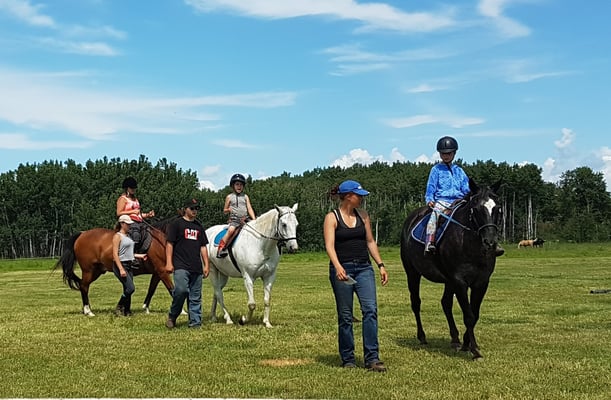 Novices ride a full hour on horseback therefore riders must prepare their horses before the class starts. Students must be able to prepare their mount with minimal assistance, demonstrate that they can perform an emergency one rein stop; hold & adjust reins; start, stop & turn horse at a walk and trot comfortably; and be willing to learn to canter/lope during their lessons.