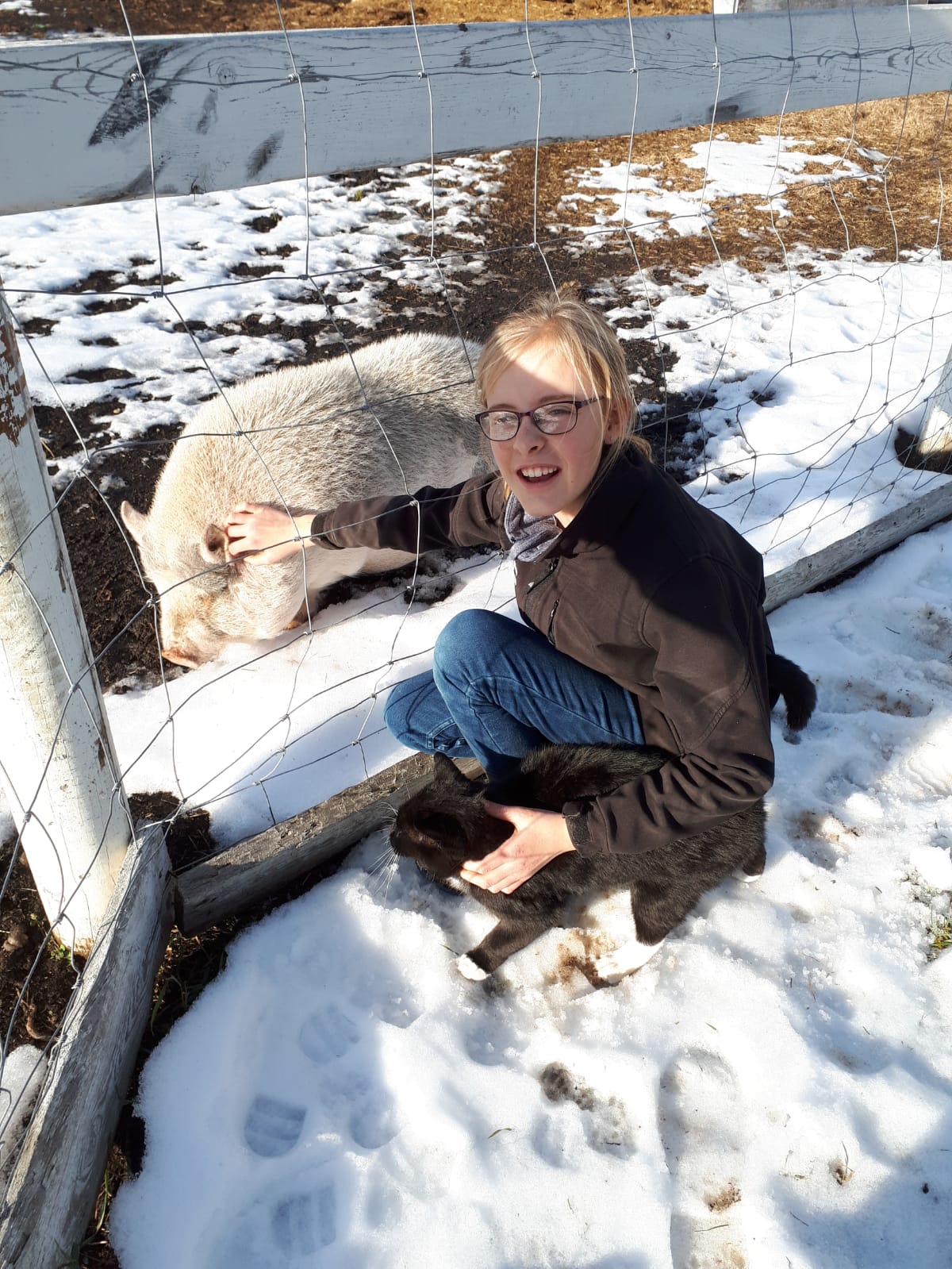 In early November I left Winning Ways on a somewhat snowy day heading for FarmFair in Edmonton. The weather was a bit scary when it started to rain about 30 km from the big city and turned the road very icy. Fortunately, in the city, there was enough salt to make the road just wet and not icy. I met Vawn and the grandgirls and their friend at the big Northlands complex and we enjoyed wandering around checking out rabbits, cattle, horses, dogs and watching the rodeo. We also got to learn how to make a type of cream cheese. On the Sunday I went back and attended some more seminars presented by the Alberta Horse Industry Branch. I also go to visit the Stable where Vawn is coaching and check out the facilities and visit Petunia the pot-bellied pig.