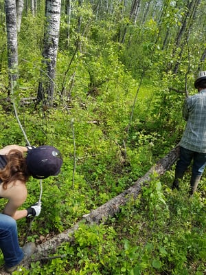 Sometimes while we are doing "a job" the helpers get to see some different aspects of living in the Northern Boreal Forest, besides all the trees that get in the way! On this particular trail clearing adventure the crew found some elk tracks, although we didn't see the elk.