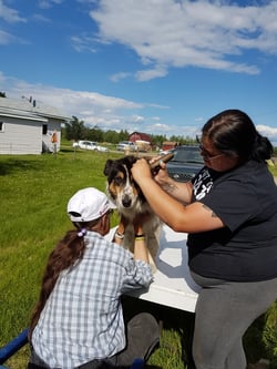 The sheep were not the only ones that got shorn in 2018. I had decided after the clip job we gave Louvic in 2017 that he was going to be professionally groomed in the future. I asked Janelle if she was willing to give him a go and she agreed. She brought her equipment and went to work right outside the back door. Louvic didn’t mind the clipping but he was very unimpressed with the bath. He certainly looked a great deal more comfortable with his Coiffure and was more pleasant to brush. In the late summer Janelle took Louvic to the doggy spa and did some more clipping. I think it was a bit too much or too late in the season, cuz he was cold until his wonderful heavy undercoat regrew. Now he can once more lay out in the snow and straw and seems oblivious to the cold. (Well at least to -30C.)