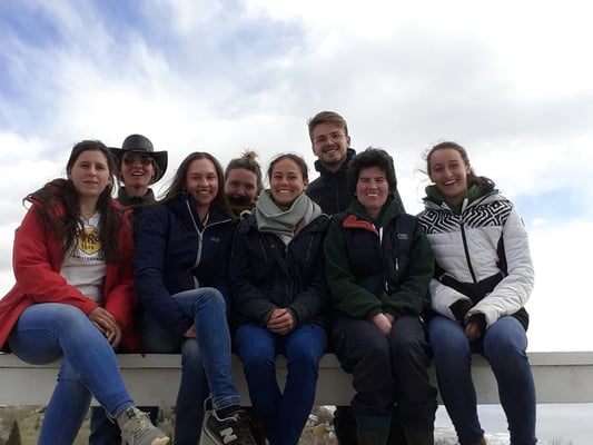 There are always helpers who want to do a photo op dressed up as cowboys/cowgirls. These young ladies were very practical, they kept their muck boots on! Later in the spring a whole van load of International helpers headed down to watch the Rodeo in North Battleford. Along the way they decided to climb the lighthouse hill in Cochin for another photo op.