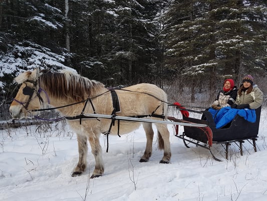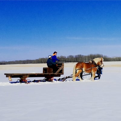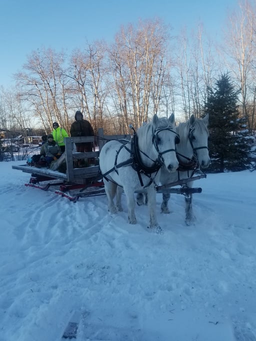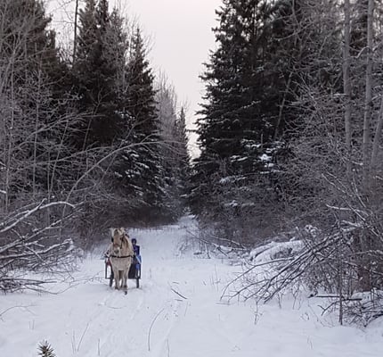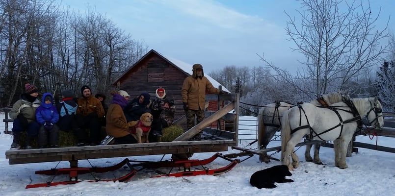 January 1, 2019 found us back at TTT for another sleigh ride with Howard. This time George and Marlene joined us and I’m very grateful that Marlene made a video with the sound of the bells. After the sleigh ride, my alumnus was fascinated by the size of the shoes Howard’s horses wear as well as their collars. I hope that most of you winter sport enthusiasts will recognize the old-fashioned snowshoes that hang on Howard’s barn wall. After putting up the team, the sleigh riders went into Howard’s shop and enjoyed a pot-luck-lunch. By the way the temperature rose to -1C by 6 P.M. on January 1, 2019. The whole day was a great start to the new year.