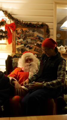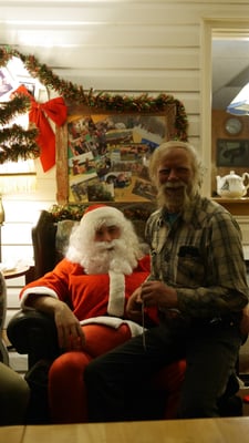 Traditionally I go to the Two Bar C for their Christmas Eve celebration; the alumnus and I enjoyed the festivities again last year. Santa always appears and we all get the opportunity to sit on his knee and receive a gift. I know George really enjoys this special day with his family and friends.