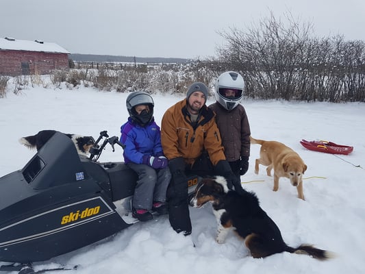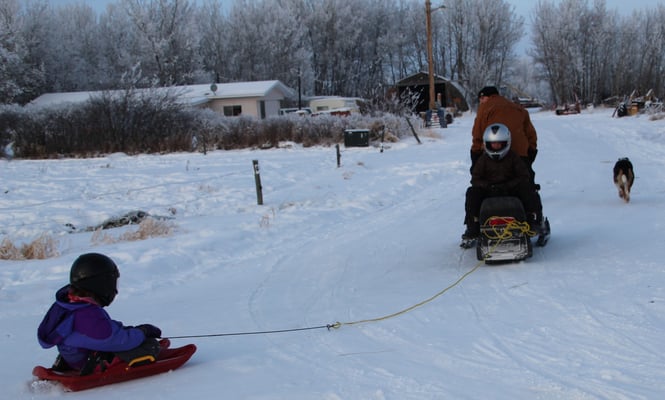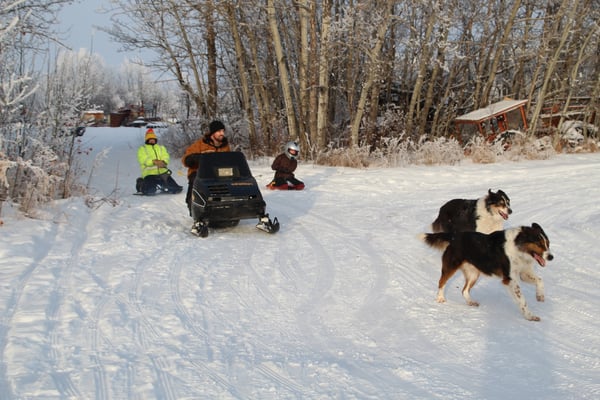 Boxing day the grandgirls persuaded their Dad to get the old snow machine running. The dogs love to run with the snow machine that is pulling kids (sometimes adults too). It was too cold to go ice fishing, but the toboggan and GT rides were great fun. The McLeans had to return to Fort Saskatchewan the next day with a couple of horses; Vawn was teaching riding lessons at an arena close to the city.