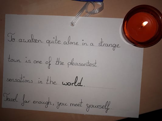 All through last December I was fortunate to receive a daily post from an international friend who lives in Quebec. She had made wonderful daily inspirational cards that she then posted to her friends. I have chosen the ones for December 21 & 22 to give you an example of her handiwork.