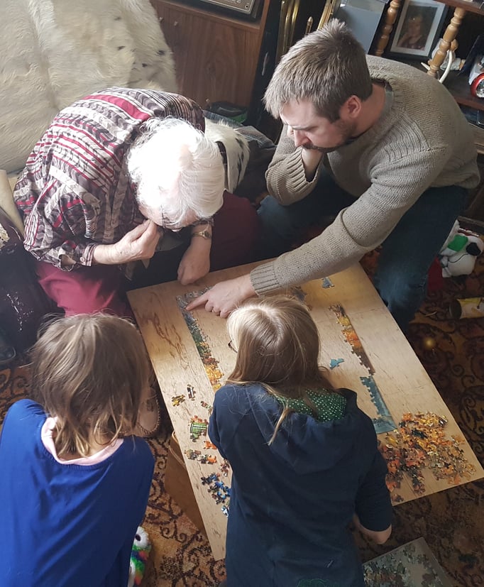 On Christmas day I know that I must have been good, because there were more gifts under the tree! After we “opened the tree”, the McLeans and Granny worked on the Christmas jigsaw puzzle, which is a time-honoured custom at our house. We had a photo taken before we all sat down to Christmas dinner with Amanda and the Brown Brothers joining us as well.