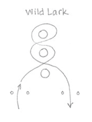 Wild Lark: riders cross between a pair of pylons weave around 3 barrels and return through another set of pylons to stop the time. May be run starting on either side. Tipping a barrel—5 second penalty.
