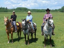 How long we work in a day depends on what the job is and how good/bad the weather is. Normally we can quit before dark in the summer & fall. In the spring we finish the last evening check of the calving cows at dark which is about 9:30 - 10:00 pm. If you are doing something that can be finished tomorrow then you can quit and return the next day. On the other hand if there are 100 head of cattle in the pen, you don't quit until all 100 have been looked after. Ranching is really a 24/7 profession but there are times when you can organize the chores so only one person is needed to look after things while the rest of the crew goes somewhere. We try to make sure that our volunteers get to do fun things nearly every day (something they enjoy--like riding, hiking, sky watching, photography), frequently while we are doing our everyday chores. We usually do something at least once a week with our volunteers for fun (a trail ride, trip off the ranch or get together with friends), and we encourage them to go occasionally on their own for recreation--fishing, swimming, camping, to the cinema, etc. This is not a job, it is a lifestyle. We try to have fun and enjoy ourselves as we get our work done.