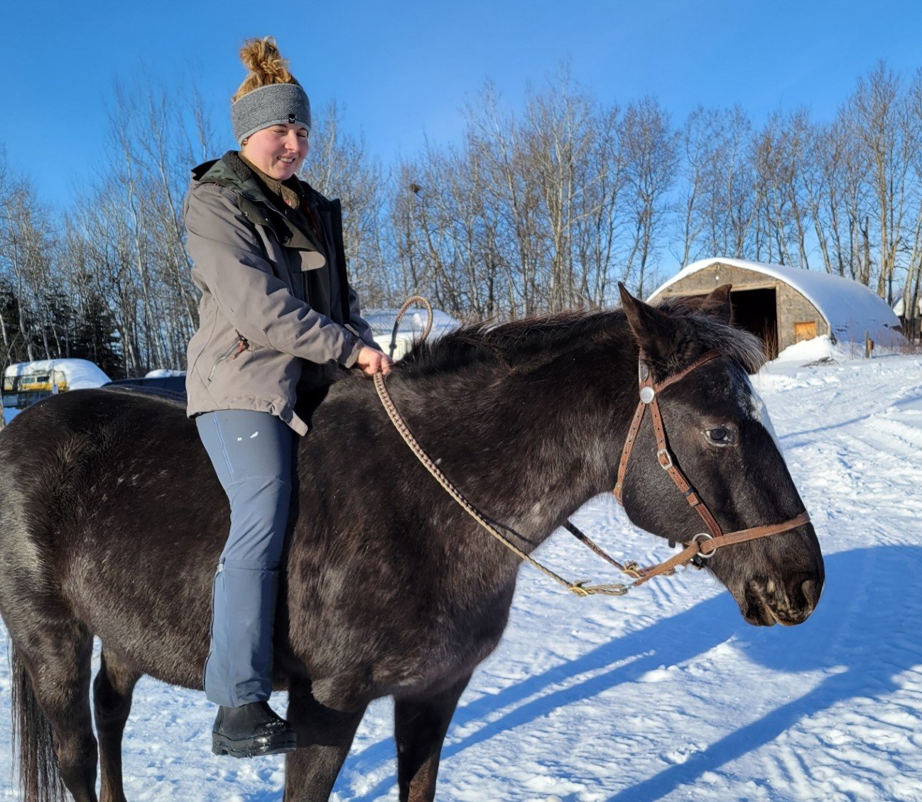Kelly has gained much of her expertise by working with many different ages of students including Kindergarten cowgirls, who are just starting their love-affair with horses, to grandmothers, who may be coming back to their first love in life, the horse. She spent 6 years working with college students in SIAST’s Equine Studies program, as well as 30+ years as a 4-H Light Horse Leader. In 2014, Kelly received recognition of her “outstanding service to the Saskatchewan 4-H Program.” For over 20 years Kelly has been a host and mentor for young people from around the world who were interested in seeing ranch life in north-western Saskatchewan. She continues to upgrade her theory and skills by regularly attending clinics and workshops. In all of her work, human and horse safety are stressed at all times!